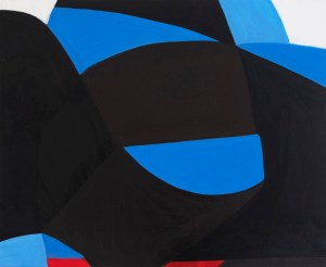 Colour folds/ black, brown, blue and red. Oil on canvas.