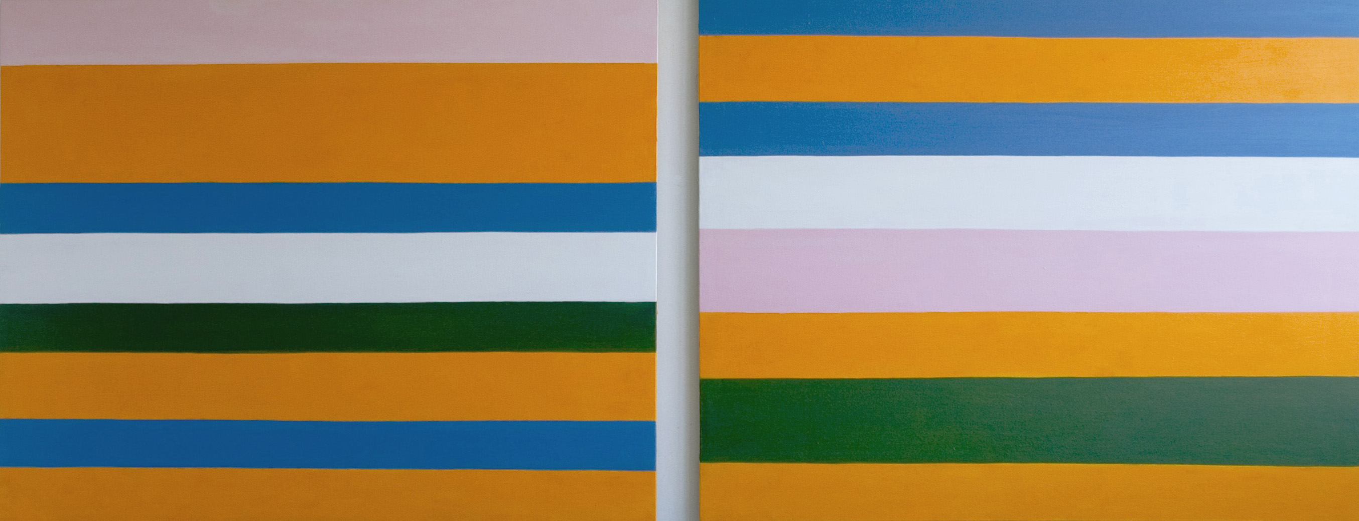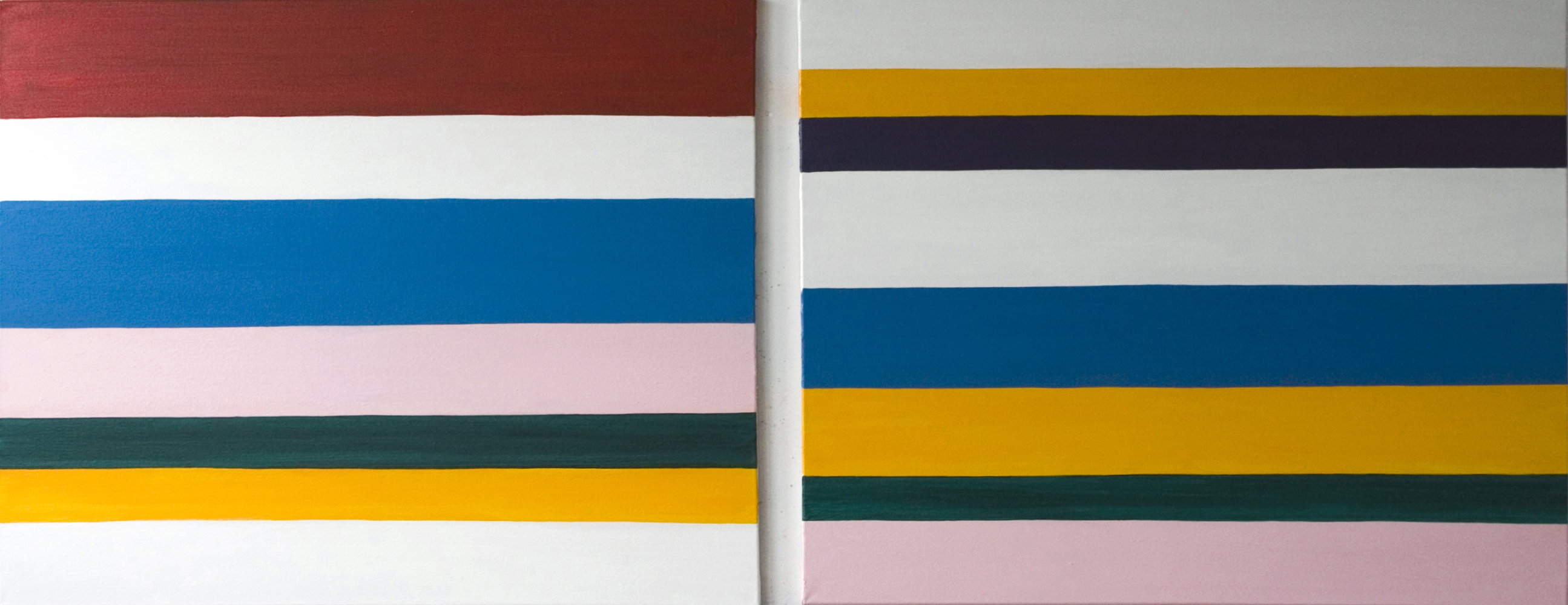 White Lines/ Pink, Yellow, Geranium, 2011, oil on canvas, diptych, 2 x 100 x 80 cm.